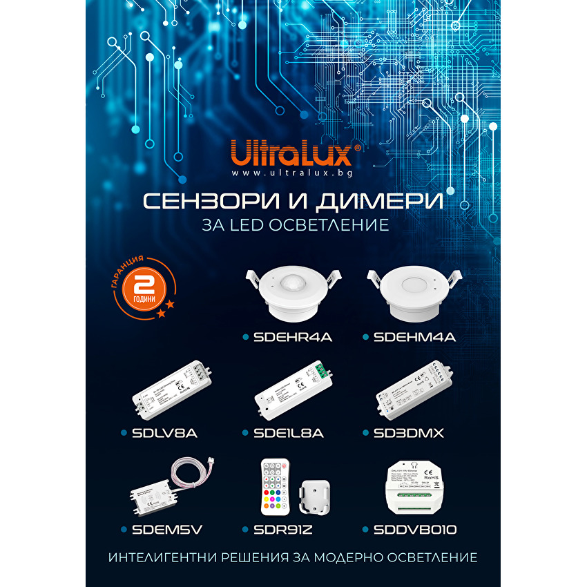 SDE1L8A е едноканален сензорен димер за едноцветно LED осветление. От едната страна се намират входно-изходните портове, а от другата сензорния. Към него се свързва микровълнов сензор SDEM5V. В зависимост от управляващото напрежение димерът включва/изключва/димира свързаната към него лента. Опционално към него могат да се свържат и други сензори като PIR сензор, TOUCH сензор, IR сензор.