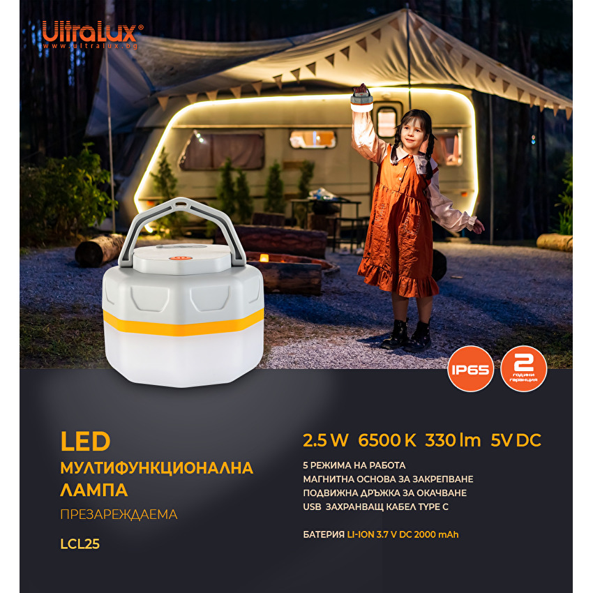 Преносимата LED лампа с мощност 2.5W, студена светлина 6500K и следните предимства: