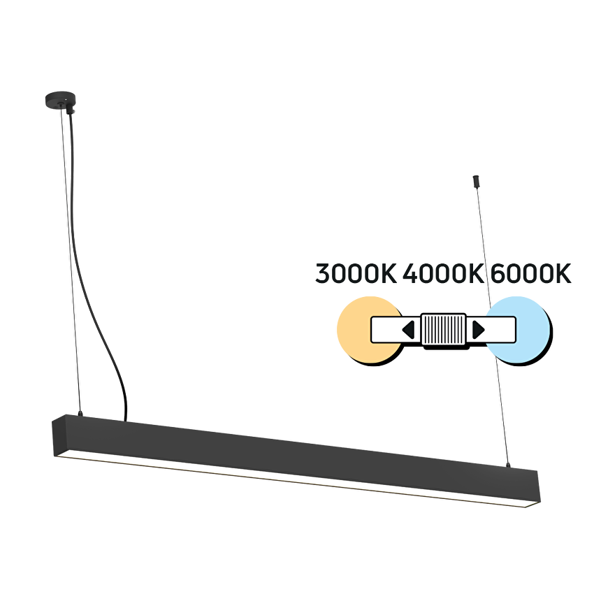 на тялото 3000K/4000K/6000K; - Възможност за висящ монтаж чрез аксесоарите, включени в комплекта (1.5 м прозрачен захранващ кабел, две стоманени въжета с дължина 1.5 м) или повърхностен монтаж чрез аксесоарите LOLFSIK (2 бр. в комплект), които може да закупите отделно;