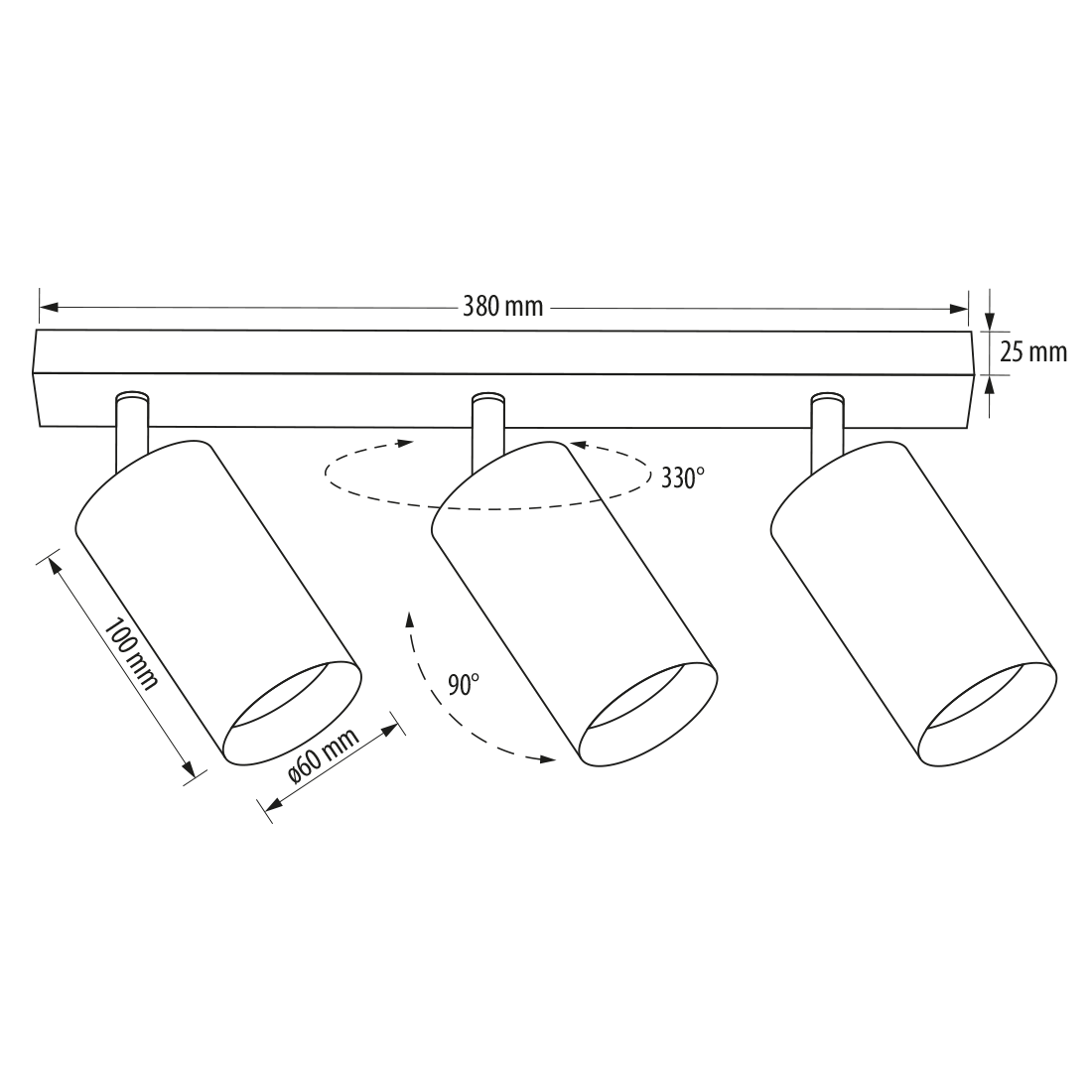Размери | ø60/100/380mm |