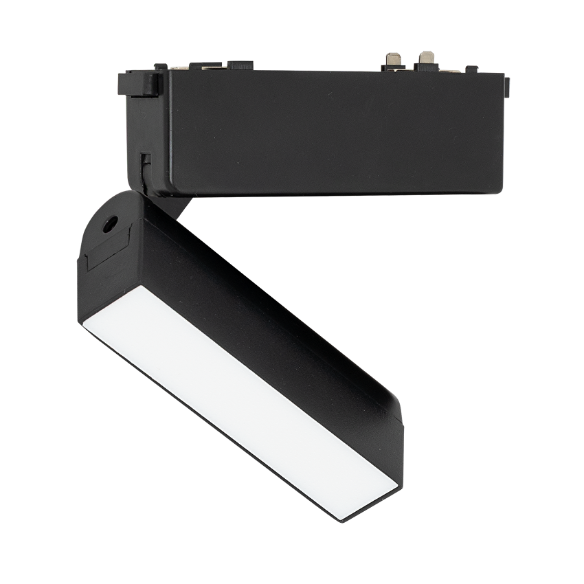 The LED magnetic SMART lighting fixtures have two types of LEDs: warm light (3000K) and cool light (5000K). The system’s power supply units control the voltage along the tracks. This allows adjustment of the light spectrum (warm–neutral–cool) as well as wide-range brightness control (0%–100%).