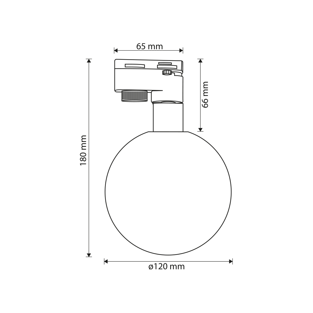 RPT1G is a track-mounted fixture with a G9 socket and an amber glass globe with a diameter of Ø120 mm.