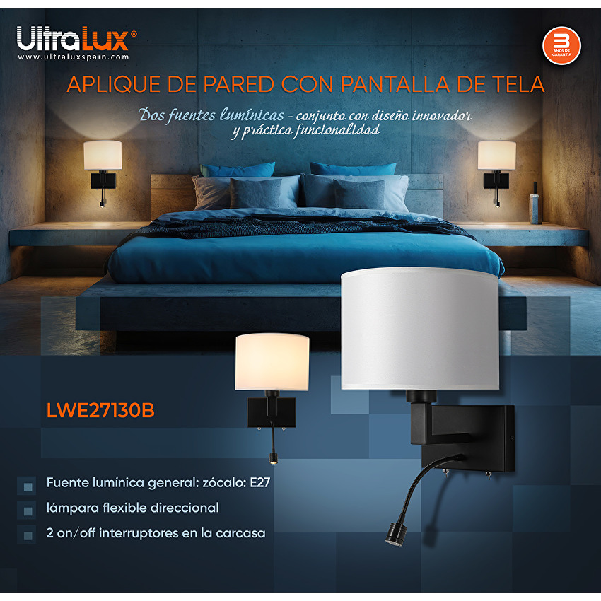 - La luminaria tiene interruptores de apagar/encender, los cuales facilitan la gestión de las dos fuentes lumínicas junto o por separado;