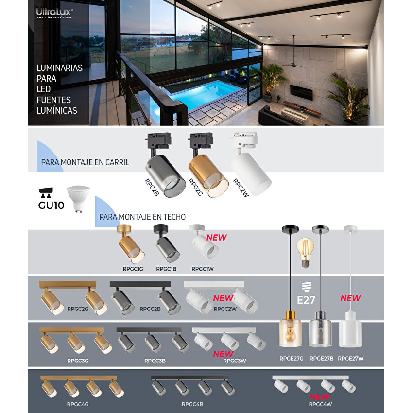 Foco de carril, de cristal, monofásico, GU10, 220-240V AC, IP20, blanco
